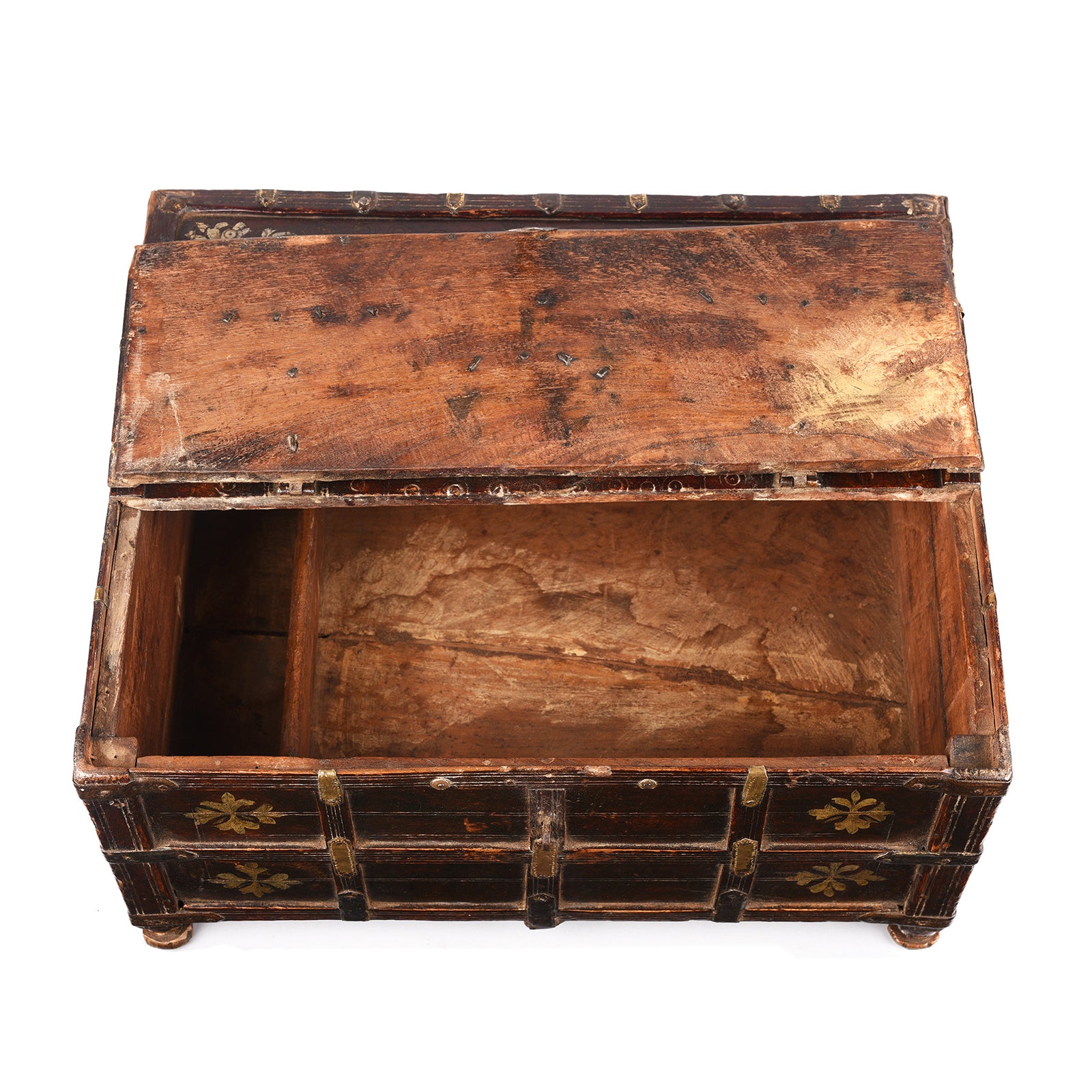 Top Down View Of Antique Teak Merchants Box From Rajasthan | Indigo Antiques