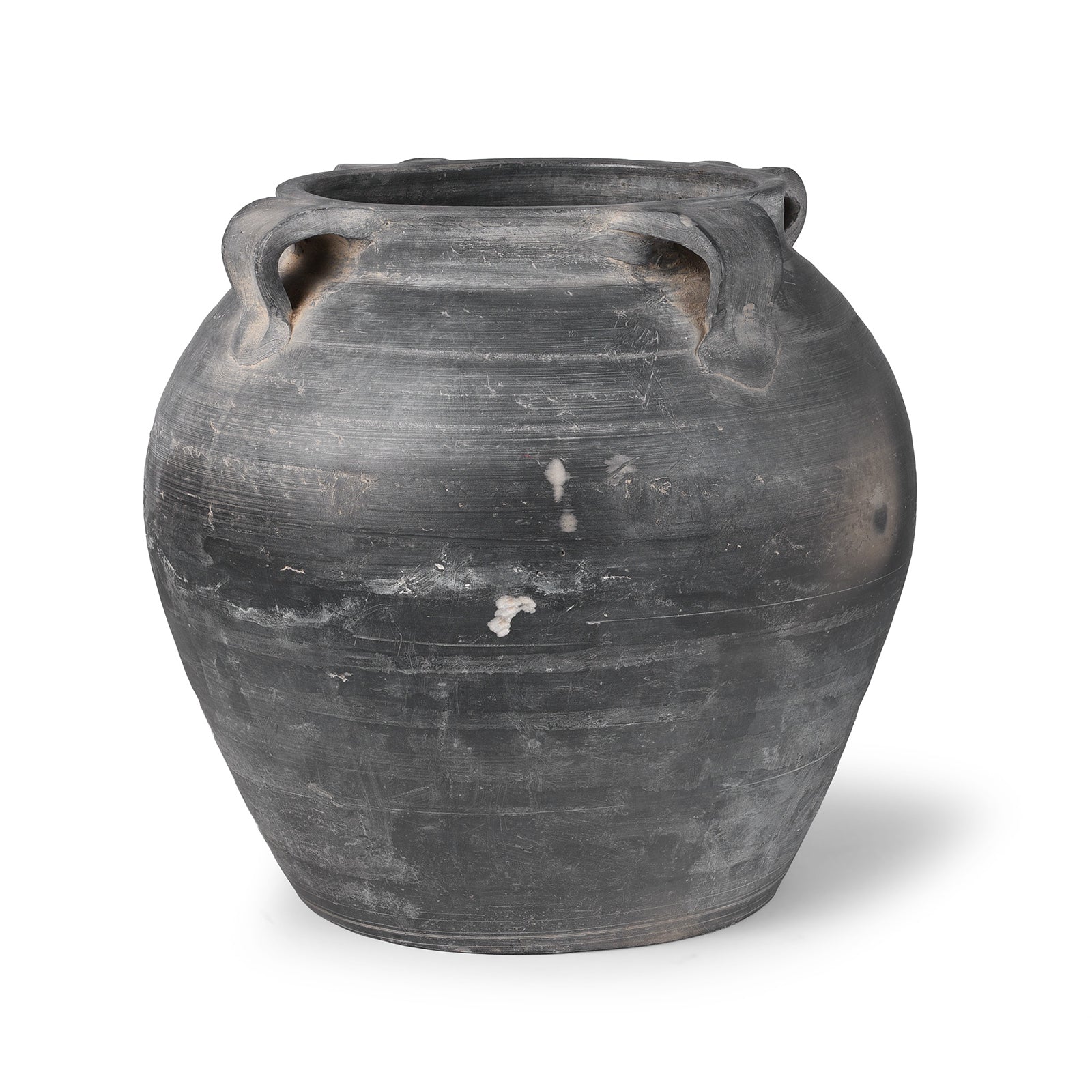 This rustic Chinese storage jar dates to the 19th century and originates from Shanxi province in northern China. Rich in earthy grey and charcoal tones, the surface has a beautifully weathered, wabi-sabi quality that reflects decades of use and natural ageing. The jar is hand-thrown, with visible throwing lines and a softly rounded form that speaks to its utilitarian origins.