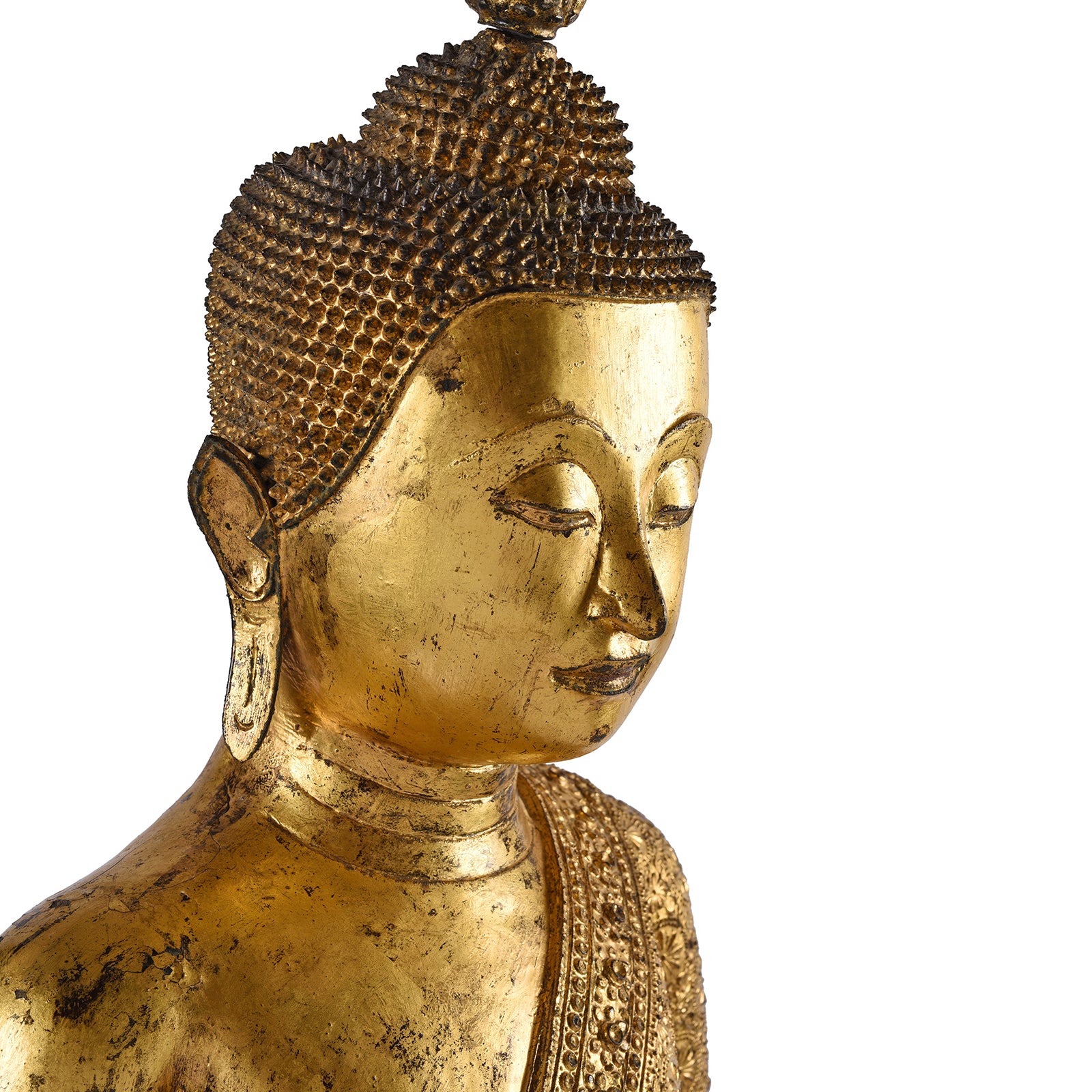 Detail From Antique Thai Gilt Bronze Rattanakosin Sitting Buddha Statue - 19th Century | Indigo Antiques