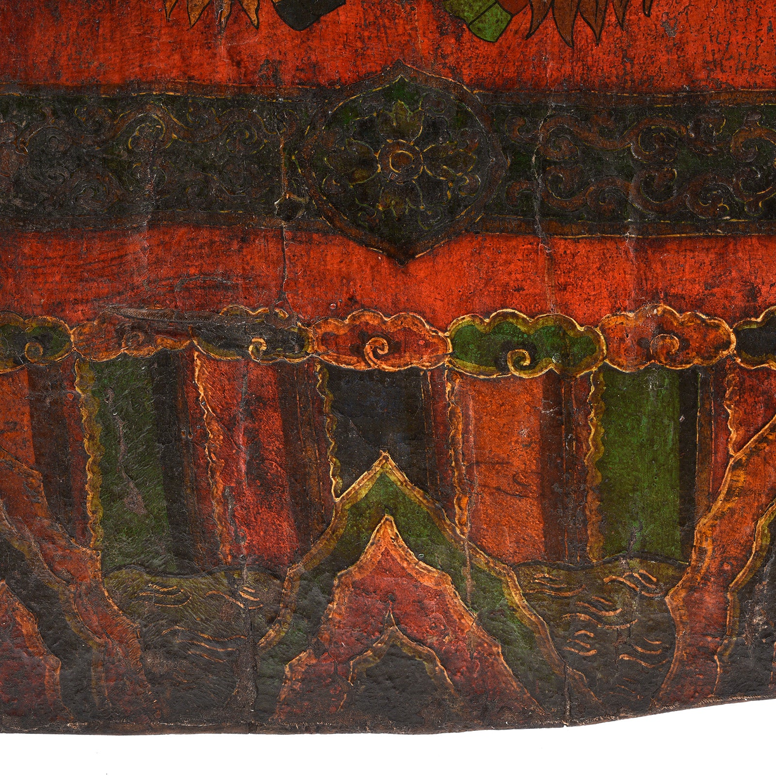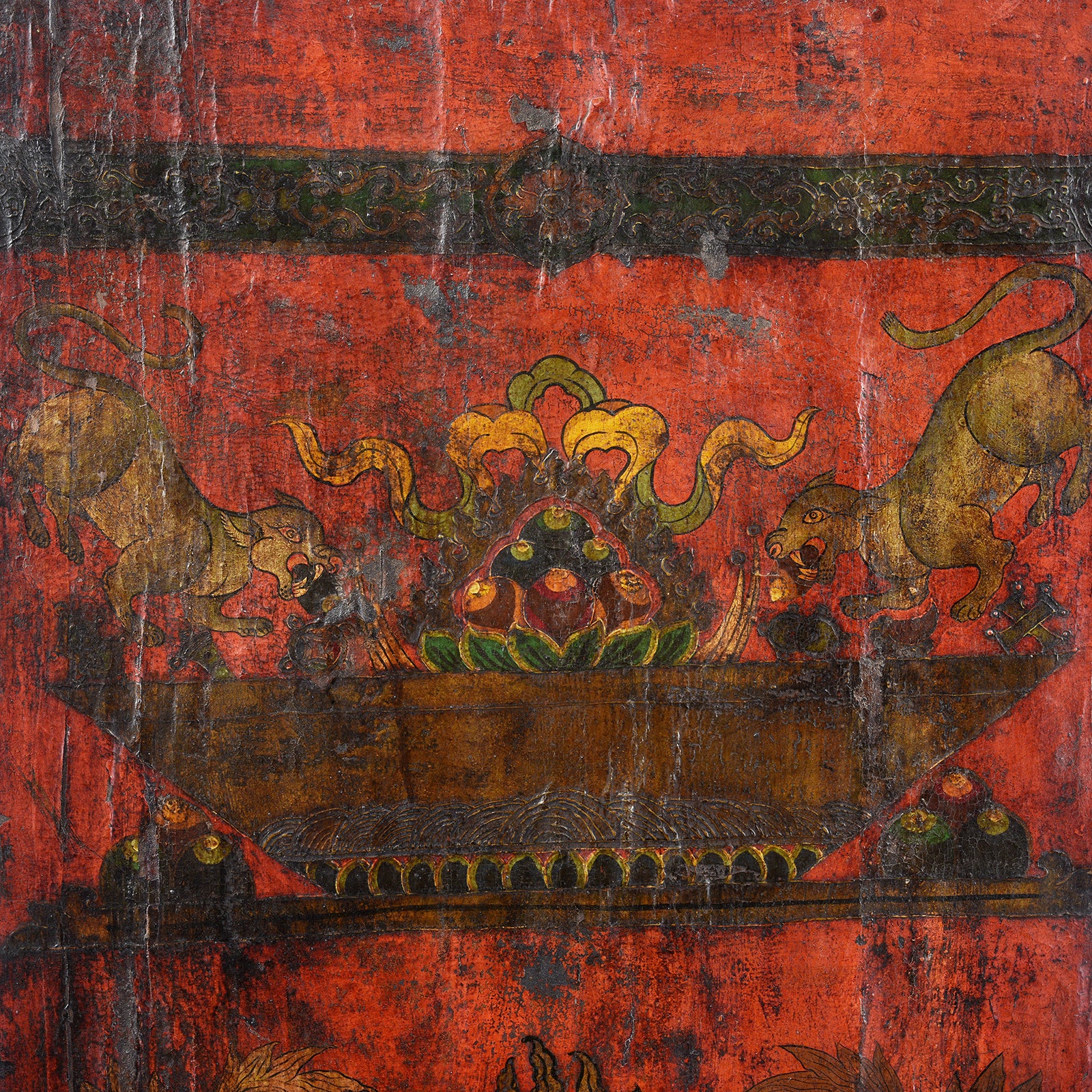 The panels would have originally been a door to either a temple or monastery. They are created by overlaying painted canvas onto wooden doors.