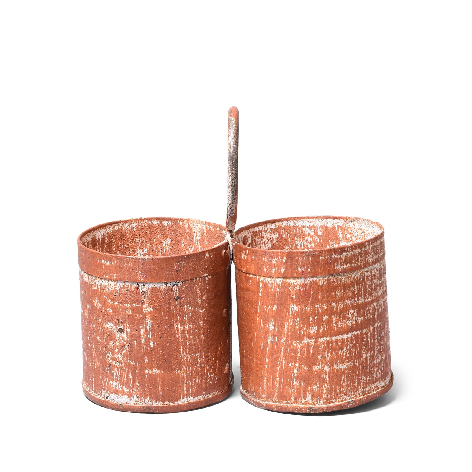 Vintage 2 Way Painted Iron Bottle Carrier - Brown