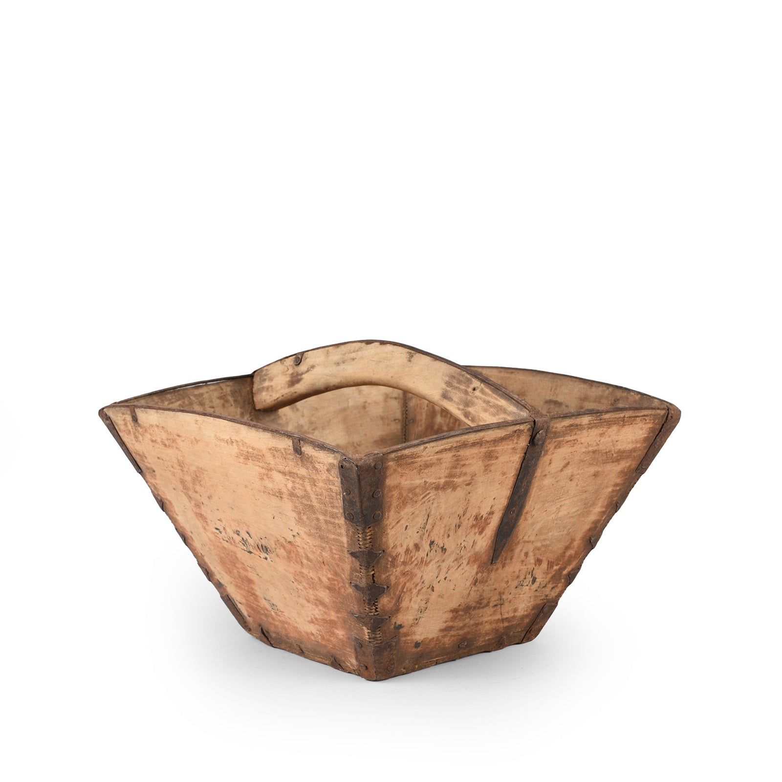 Antique Chinese wooden trugs  like this were used by traders for taking their goods to the market to sell, and for measuring rice. They would also be used by farmers for moving goods around on the farm.  It has been very skillfully constructed, note the detailed work of the corners. Hand made from poplar wood.