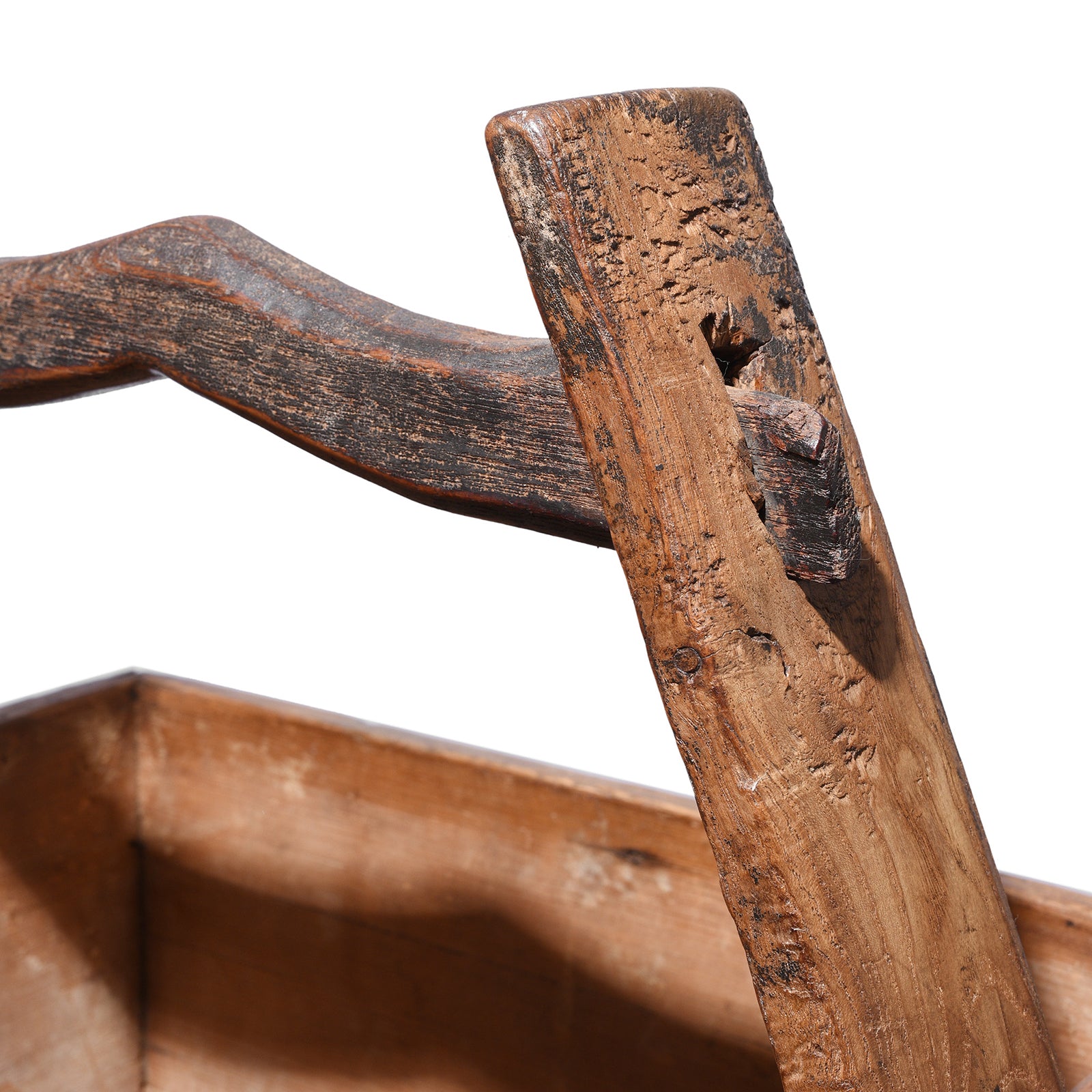 These old Chinese wooden vegetable baskets were used by farmers for taking their goods to the market to sell, and for measuring rice. They would also be used by farmers for moving goods around on the farm. This one is constructed from elm wood and is originally from the early 1900's. It has developed a wonderful patina over the years.