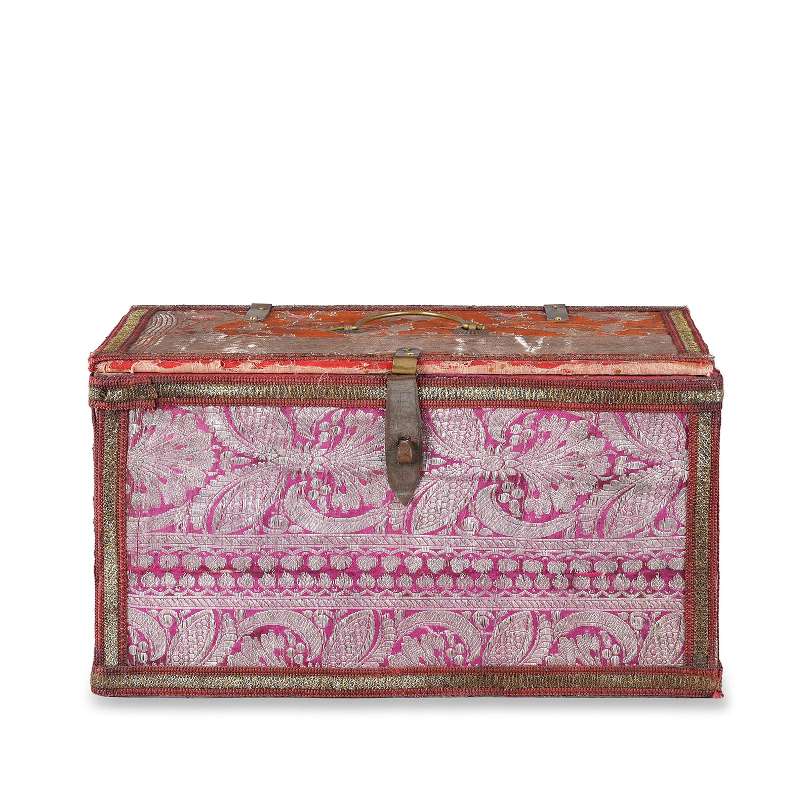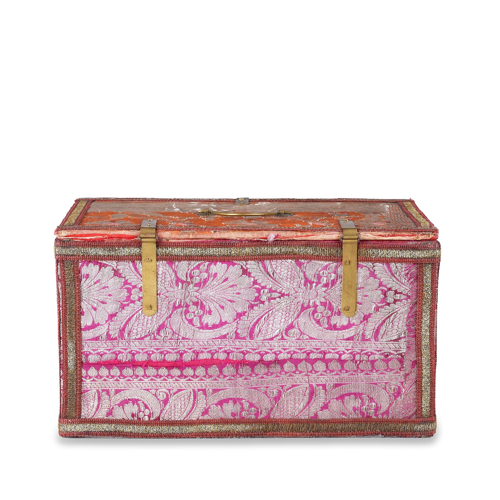 Vintage Pink / Orange Textile Box From Rajasthan - Ca 1950