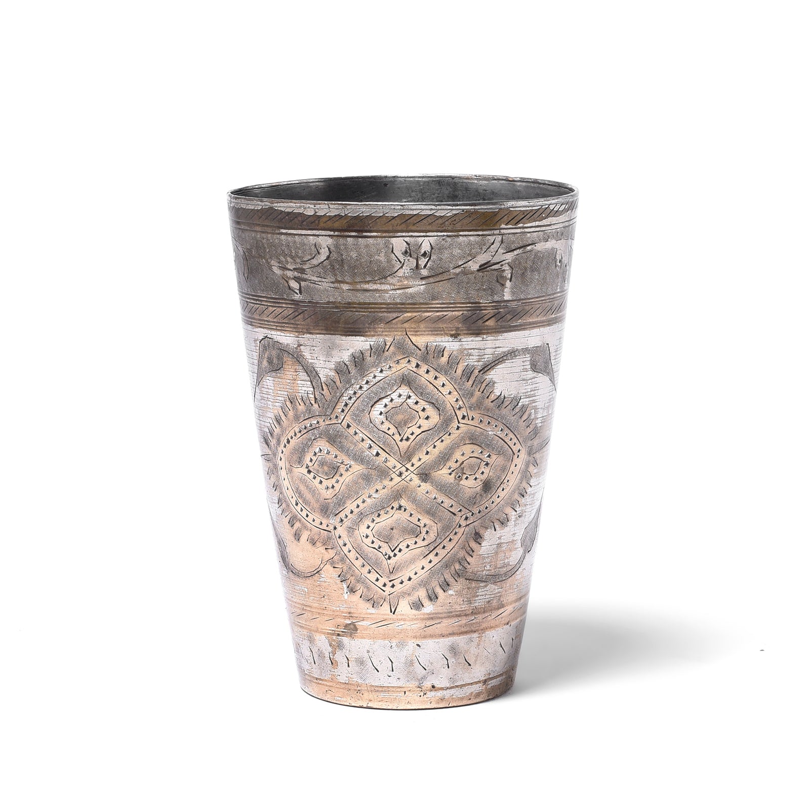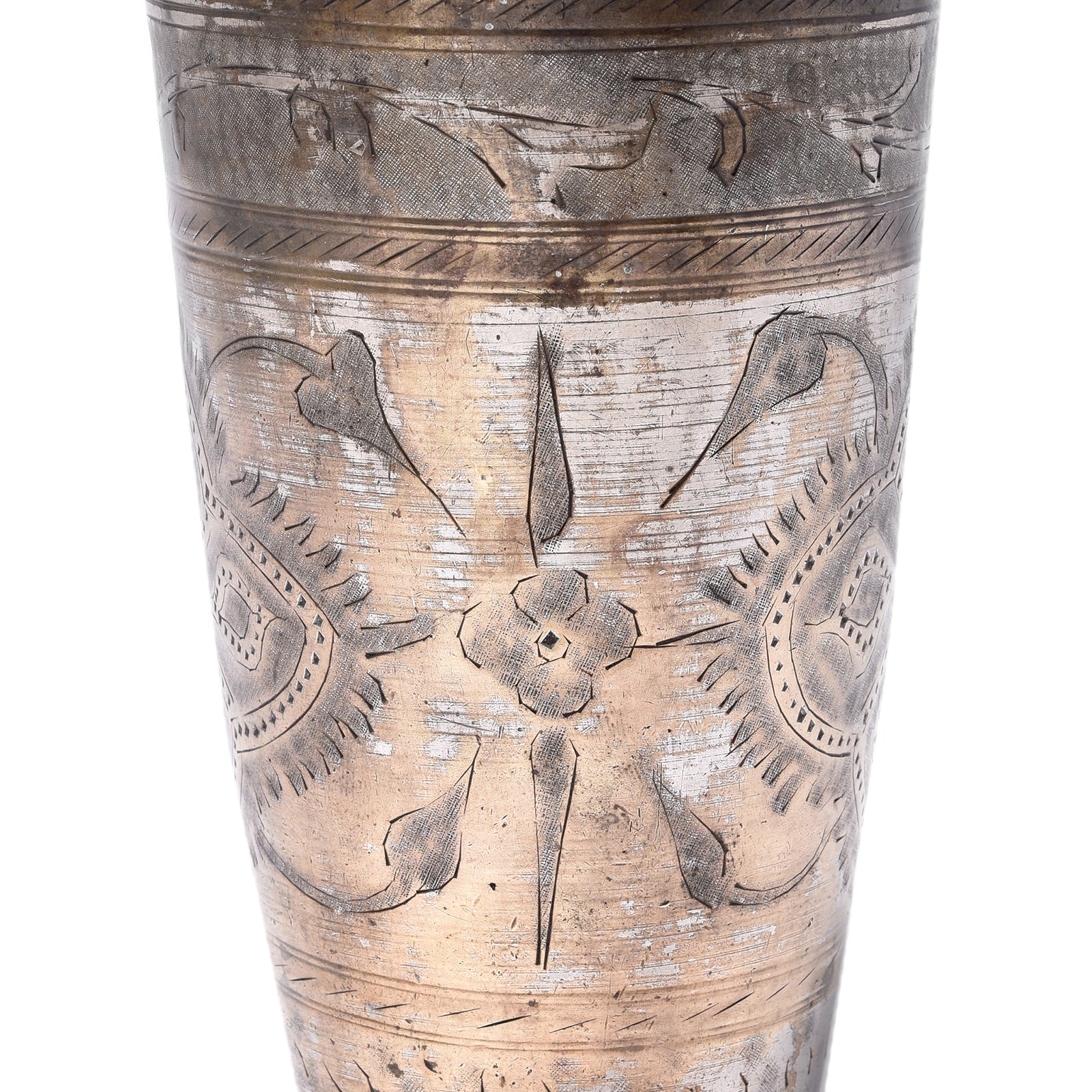 Patterned Vintage Lassi Cup - Nickel Plated Engraved Brass | Indigo Antiques