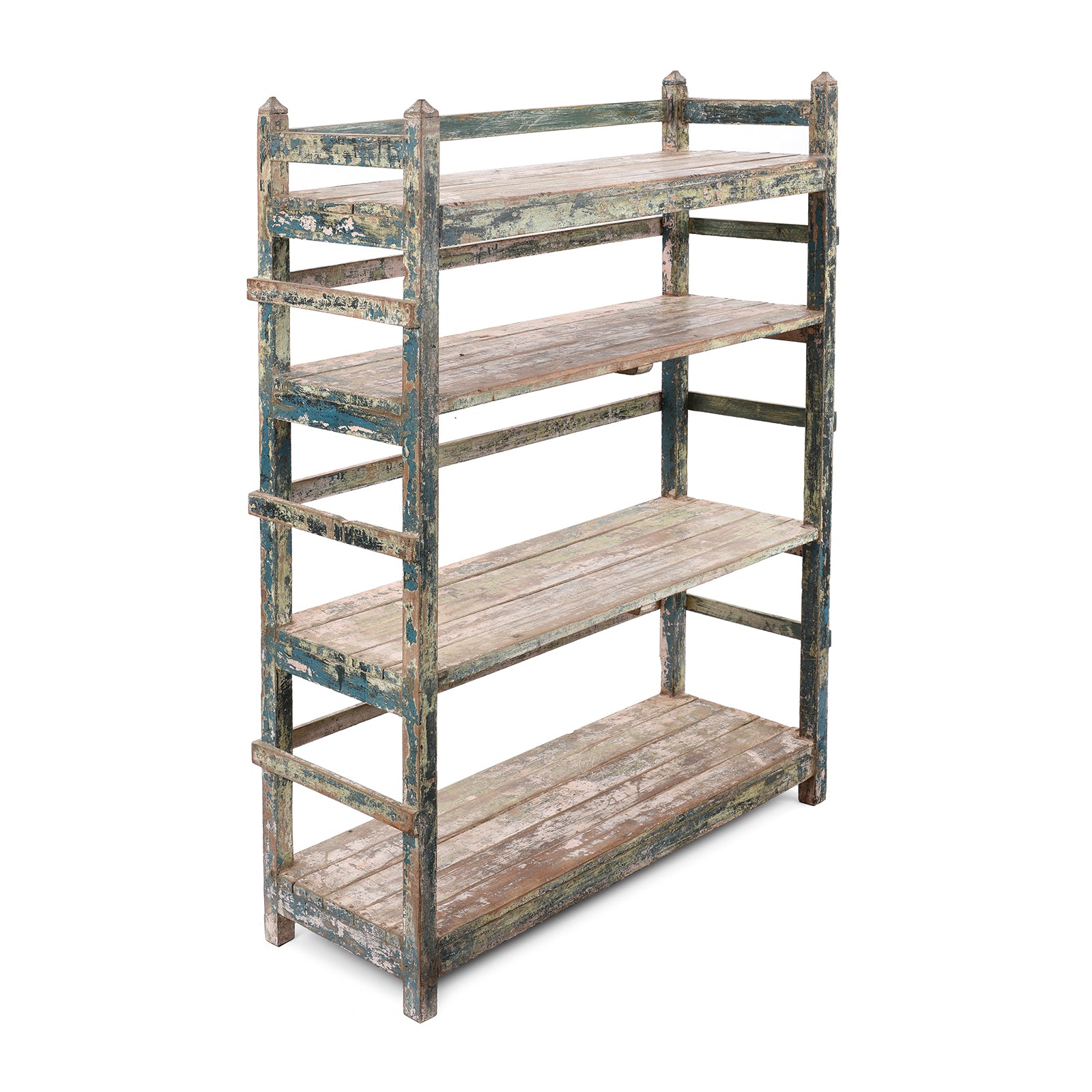 Vintage Painted Indian Teak Slatted Shelf - Ca 1930