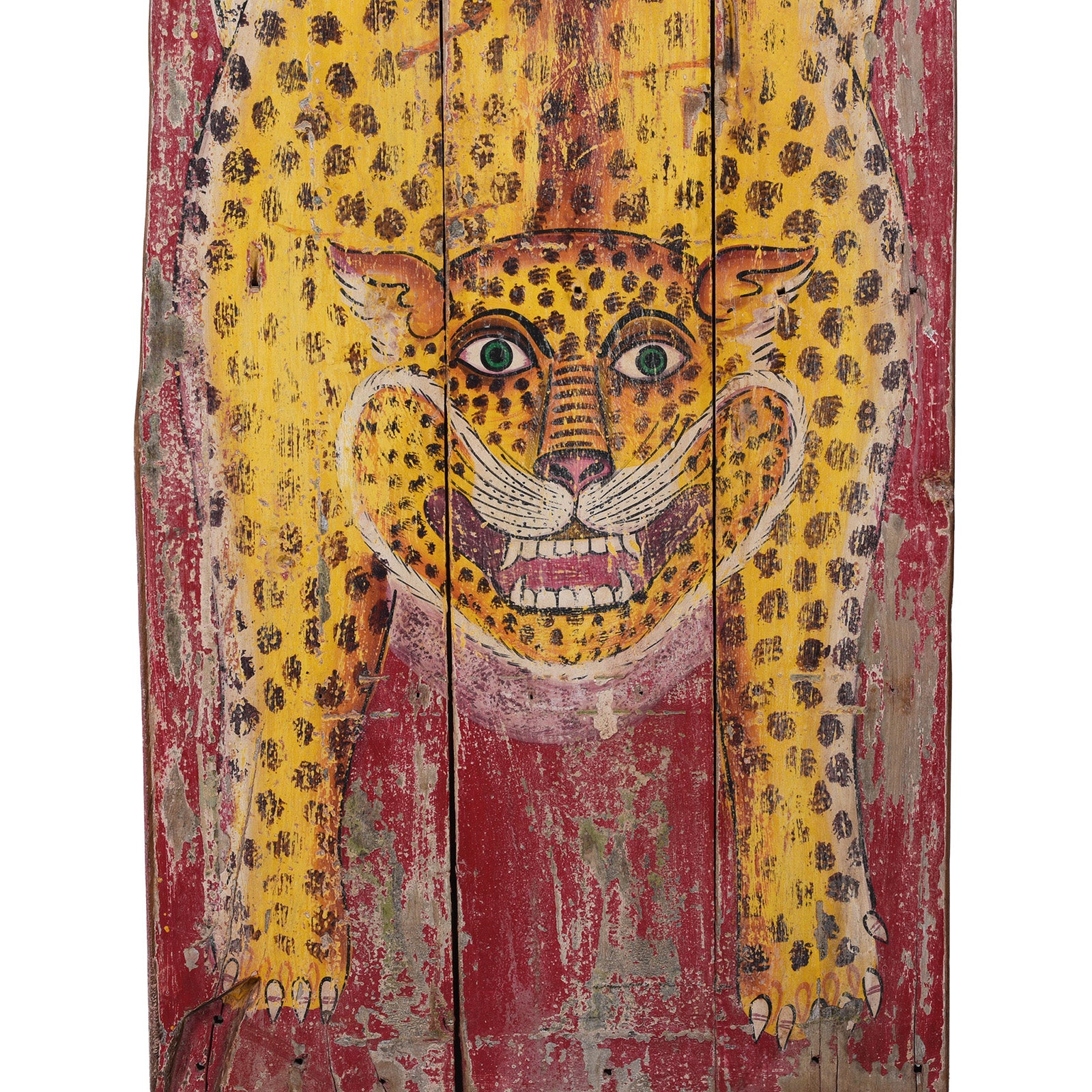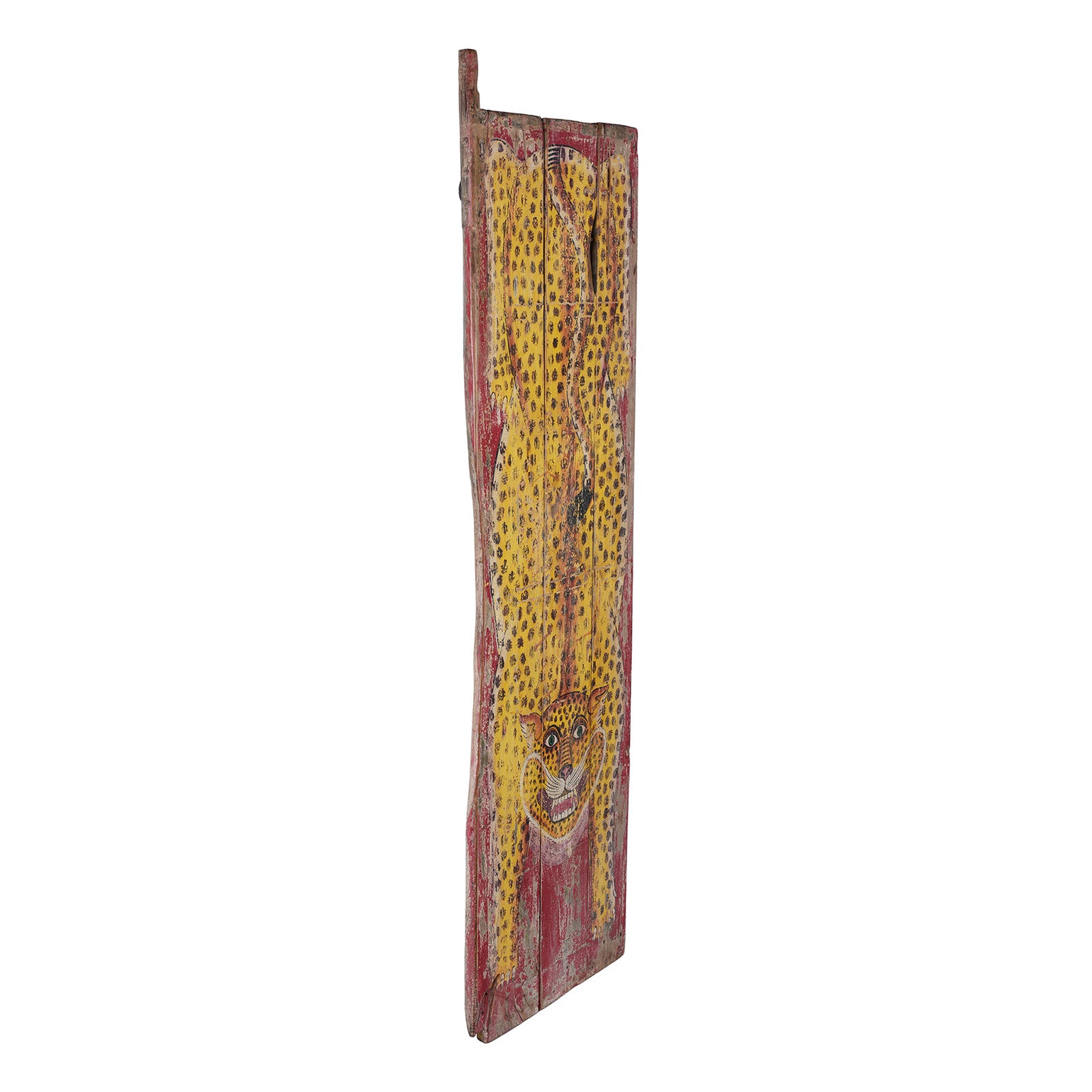 Vintage Painted Leopard Panel From Madhya Pradesh | INDIGO ANTIQUES