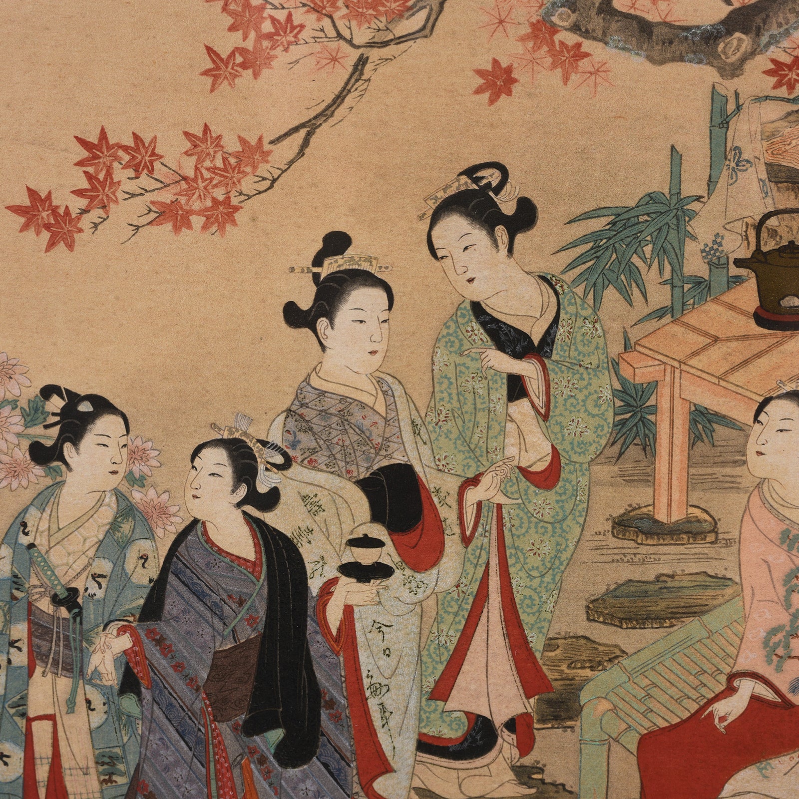 Detail From Antique Framed Japanese Woodblock Print by Nishikawa Sukenobu | Indigo Antiques