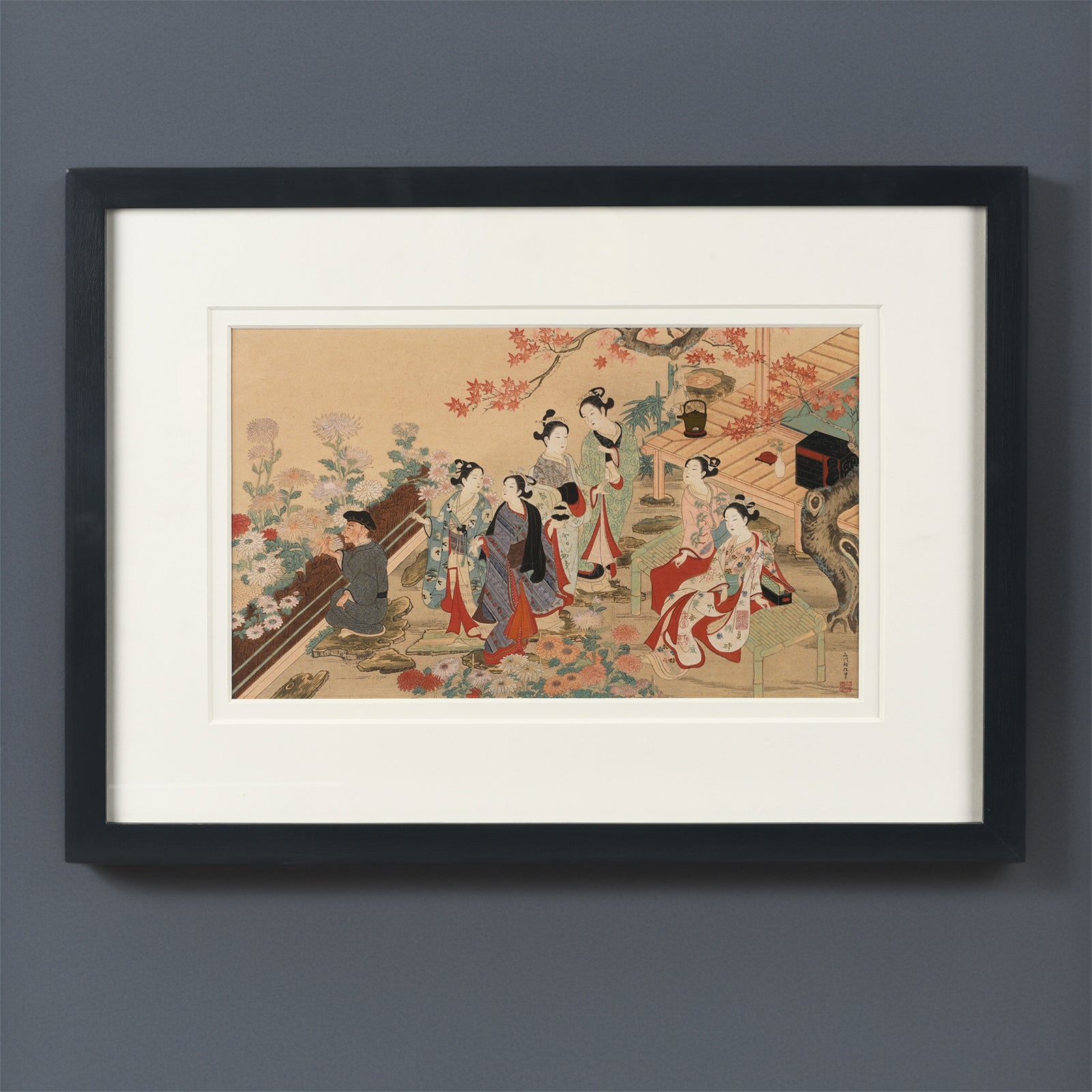 Antique Framed Japanese Woodblock Print by Nishikawa Sukenobu | Indigo Antiques