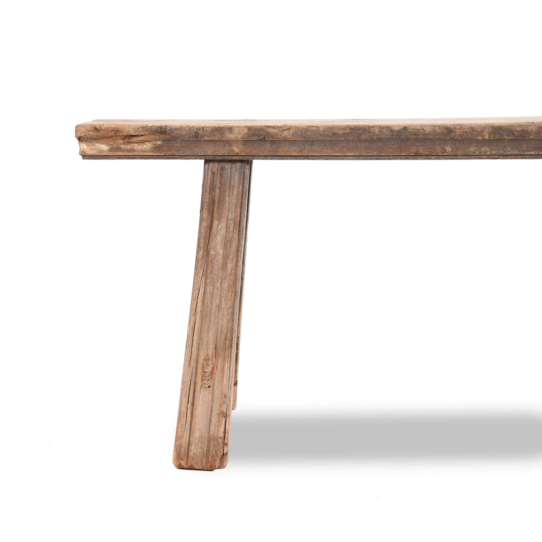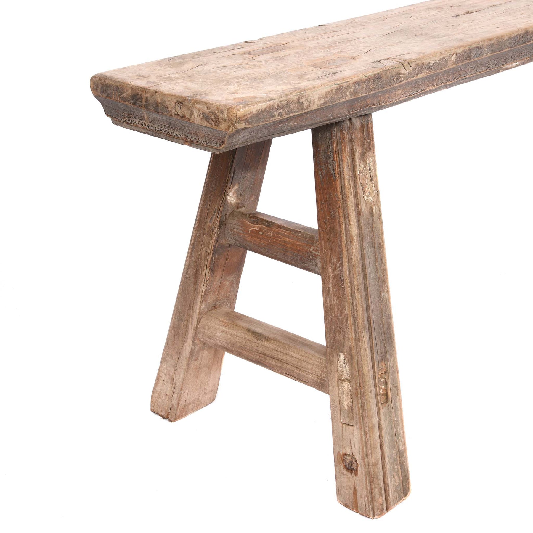 This classic rustic walnut bench is constructed with a thick plank of solid walnut traditional Chinese carpentry - no screws anywhere. These sturdy wooden benches are a vital component of any shabby chic interior and originally would have been used by farm workers. Versatile, they can be used as a side table or as an extra stool for guests at a dinner table.