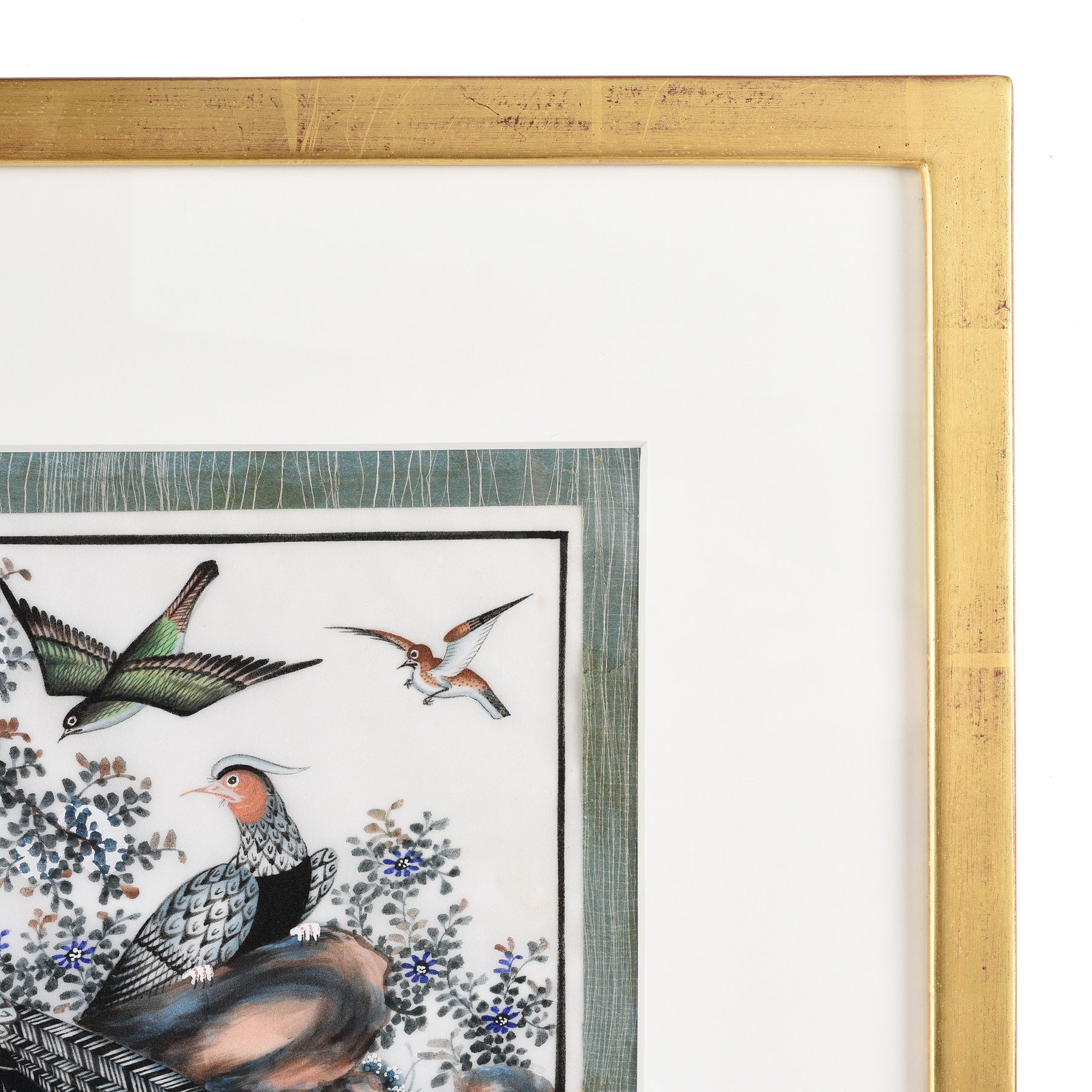 Frame Detail From Framed Watercolour Painting of Birds on Pith Paper - 19thC I Indigo Antiques