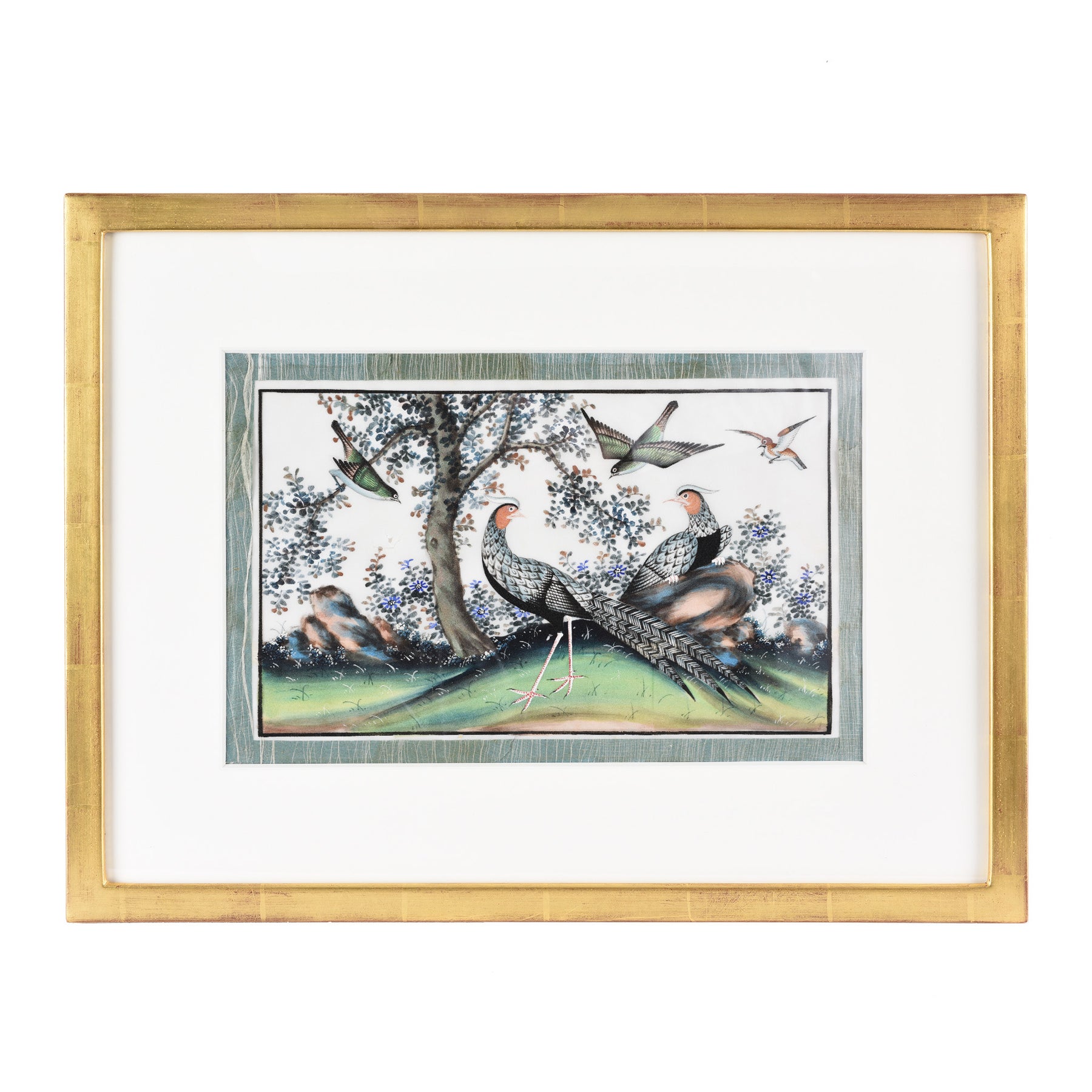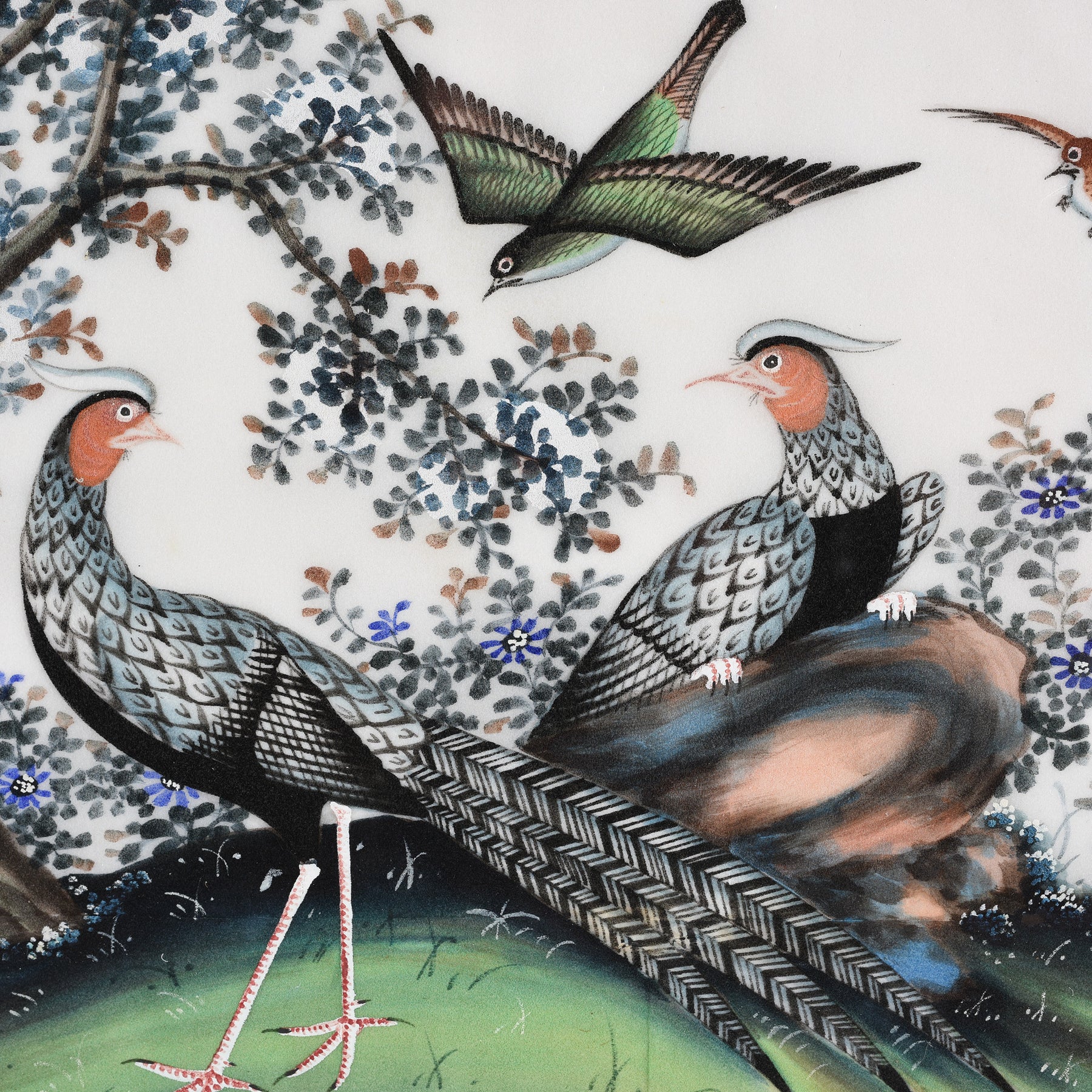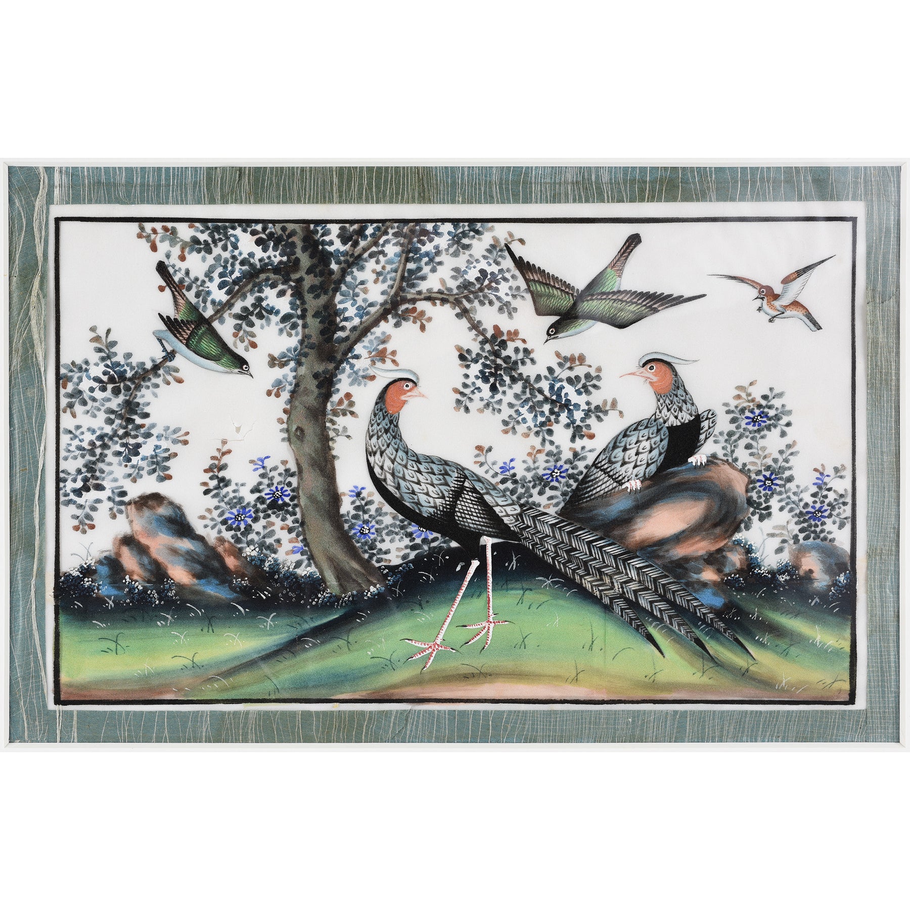 Detail Of Framed Watercolour Painting of Birds on Pith Paper - 19thC I Indigo Antiques