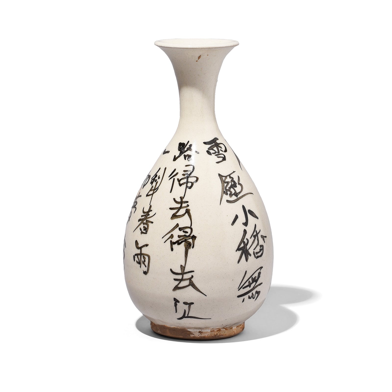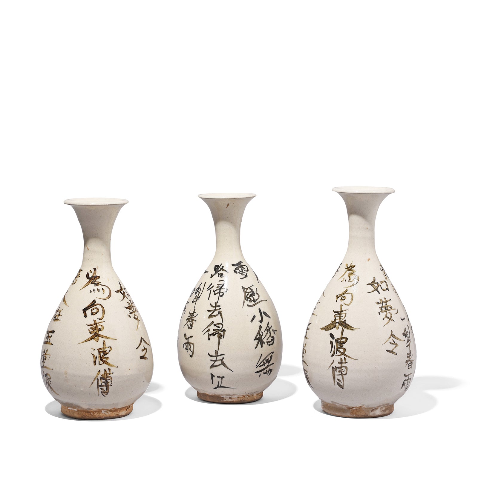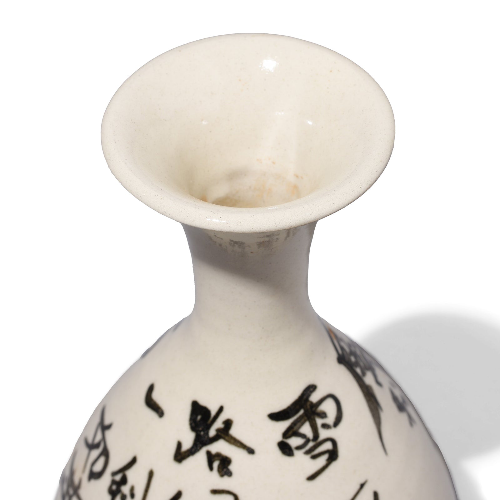 These charming small reproduction Chinese vases are made in the style of Japanese sake bottles. The calligraphy decorating them is mostly poems about tea or rice. The style is Song Dynasty.