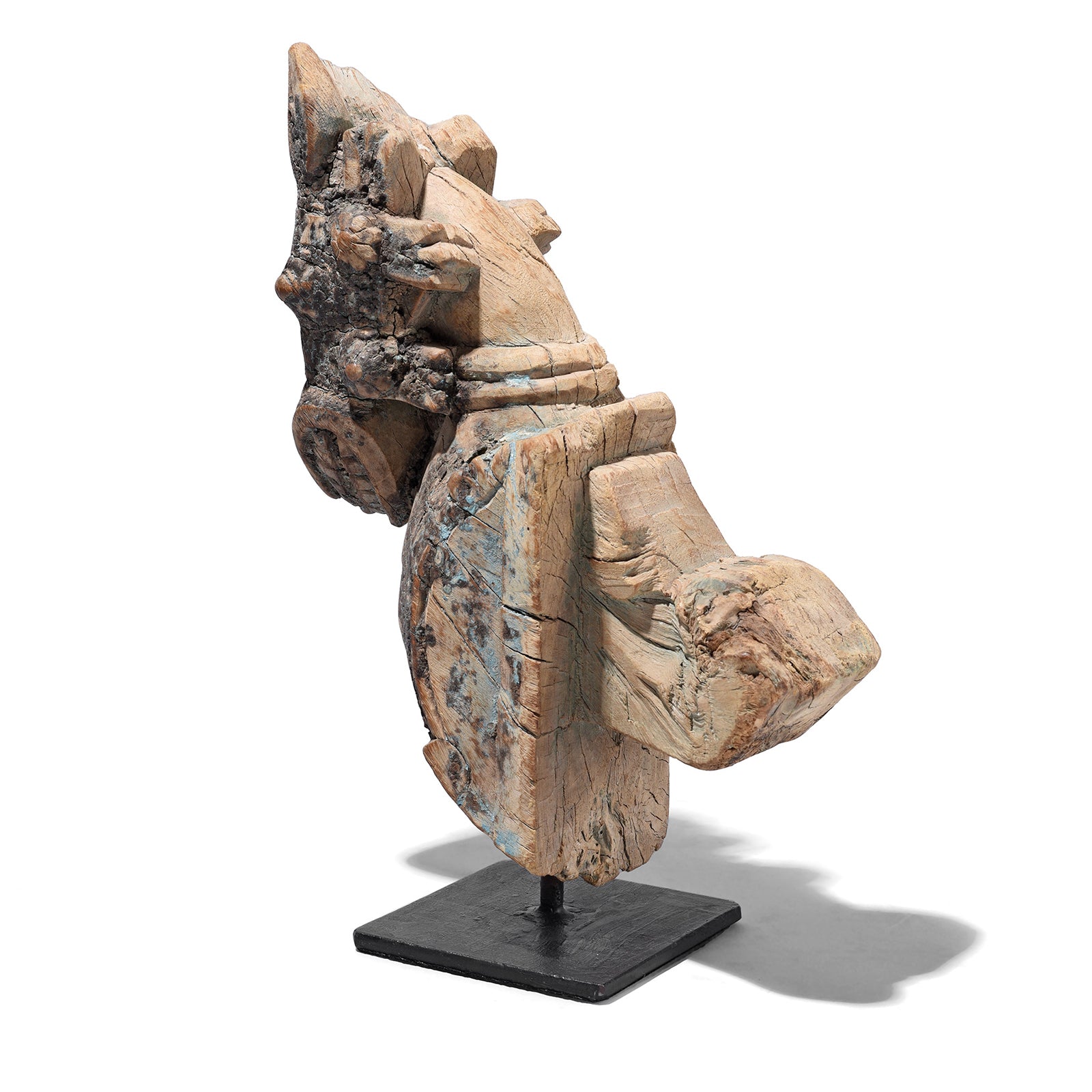 This magnificent horse head started out as a corbel from a grand doorway in India, where the horse is a symbol of prosperity. Crafted in the 19th century from solid teak wood it is beautifully carved from a single piece of wood, it has been mounted on a simple iron stand to produce a wonderful sculpture.