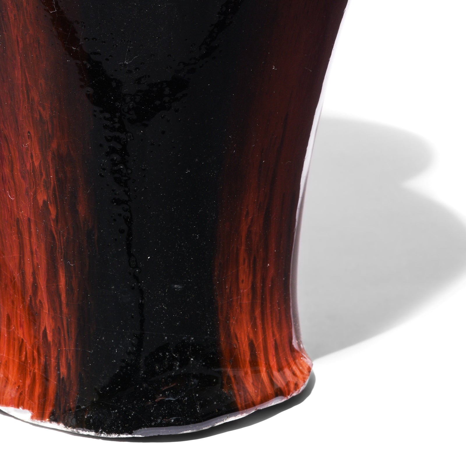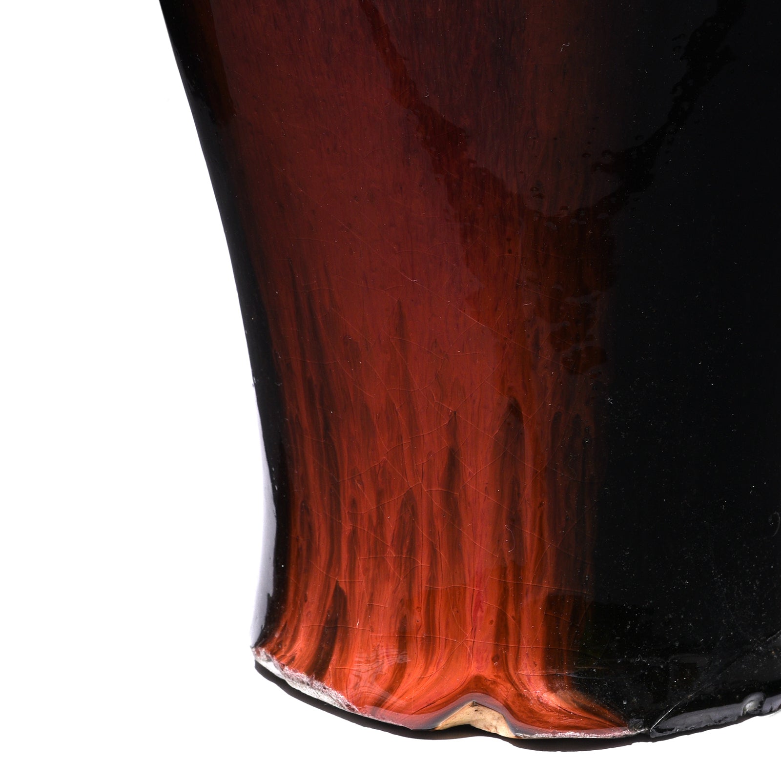 This beautifully rich & glossy dark red and black flambe vase is a Chinese reproduction piece made in Jingdezhen in the traditional way by hand. Yaobian translates to 'transmutation' and refers to the the variegated glaze effect which occurs as the glaze changes colour during the kiln firing process.